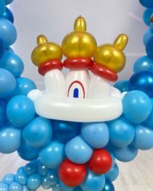 Предлагаем уникальную возможность оформления мероприятия интересными скульптурами и красочными композициями. Для создания настроения и нужной атмосферы используем воздушные шары, знакомые с детства. Эта простая игрушка руками наших дизайнеров превращается в потешную куклу(фигурку) или торжественную акру, настенное панно. Эффектное украшение шарами создаёт обстановку праздника, вызывает радостную улыбку. Обратите внимание на современные возможности художественного оформления помещений или открытых площадок воздушными шариками – декораторы помогут воплотить любые ваши идеи или предложить собственные оригинальные решения, отвечающие духу и тематике предстоящего мероприятия. Перейти в раздел отзывы