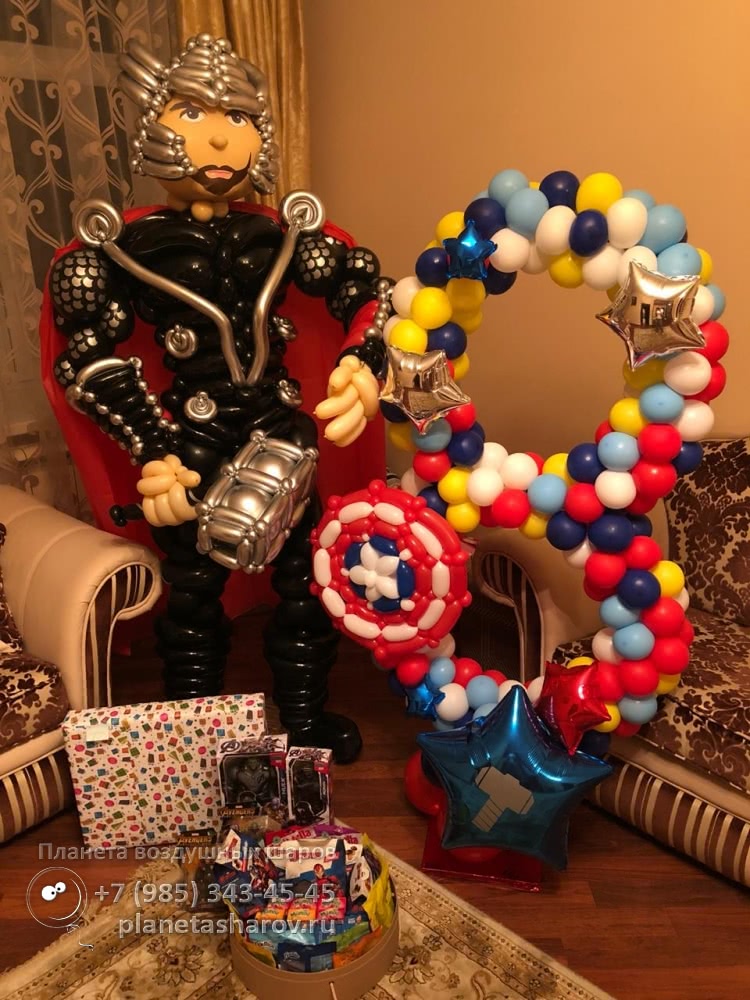 Оформление праздников воздушными шарами от компании Планета шаров – это бюджетный и удобный способ сделать праздник незабываемым. Наша фирма предоставляет услуги по наиболее доступным ценовым предложениям. Именинник и все его маленькие гости будут в восторге от оригинально оформленного праздника в стиле любимых супергероев. При желании можно заказать и других персонажей знаменитой команды Мстителей из воздушных шаров.