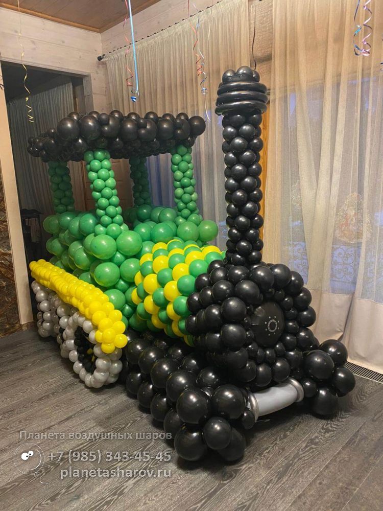 - построим большую фигуру трактора из ярких воздушных шаров.