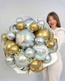 Серебряно золотой букет воздушных шаров купить в Москве по доступной цене с быстрой доставкой 🎈 Огромный выбор шаров и товаров для праздника. Привезем радость вашим близким 💑