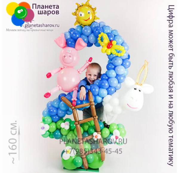 Воздушная цифра в стилистике мультсериала Маша и Медведь