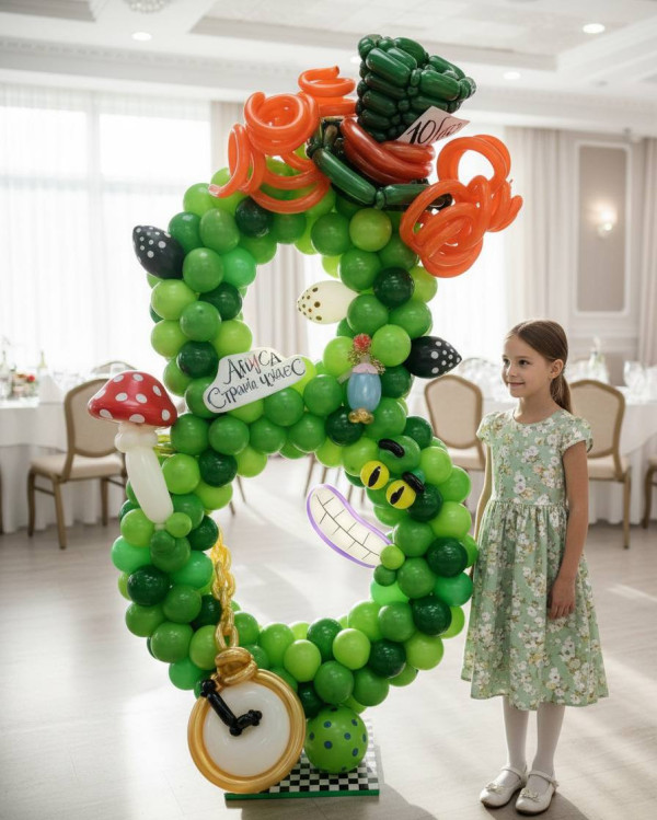 «Планета шаров» создаст для вас поистине удивительный декор. Вы можете заказать как цифру, которая оформлена так же, как в каталоге, так и другое число, оформленное согласно любым вашим пожеланиям. Хотите увидеть на дне рождения загадочного Чеширского кота или мудрую гусеницу Абсолема? Может, желанным гостем будет сама Алиса или белый кролик?