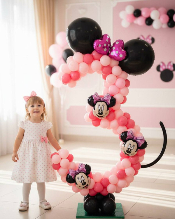 Цифра из воздушных шаров на классную тематику Минни Маус