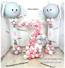 Розовая цифра с зайками купить в Москве по доступной цене с быстрой доставкой 🎈 Огромный выбор шаров и товаров для праздника. Привезем радость вашим близким 💑