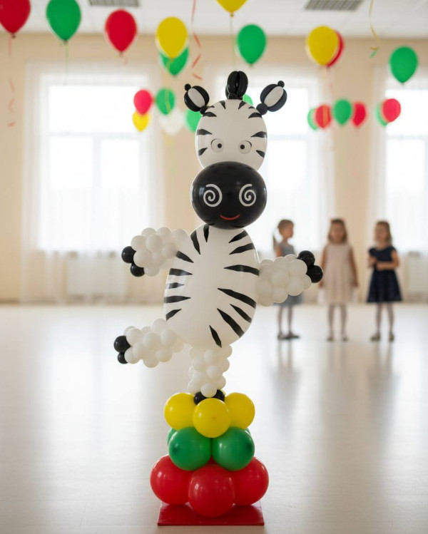 Зебра из шаров - это отличное решение для детского праздника, ведь она непременно станет любимицей маленьких гостей, которые не захотят с ней расставаться. Ее простота и веселость очаруют даже взрослых, так что мероприятие в такой приятной компании непременно пройдет замечательно.