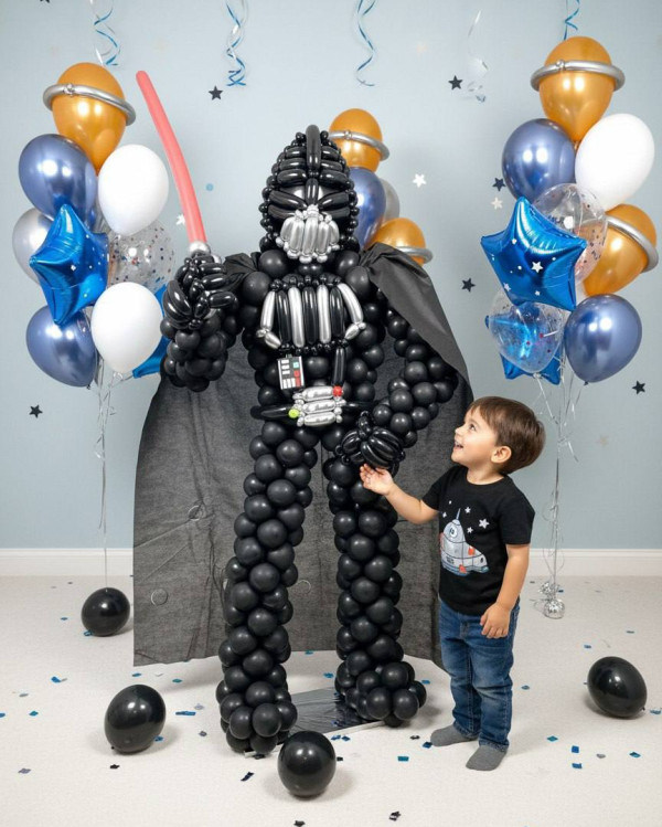 Если ваш ребёнок обожает легендарные «Звёздные войны» и всех его героев, вы можете с лёгкостью воплотить его мечты, подарив ему знаменитого Дарта Вейдера из шаров. Дарт Вейдер – это величайший злодей в увлекательном фильме, но в тоже время является для мальчишек одним из самых подражаемых персонажей.