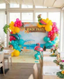 Если вы далеки от разбойнических мотивов, пальма из шаров может удачно украсить любое мероприятие, оформленное в гавайском стиле. Его дополнят соответствующие танцы, кокосы и гирлянды из цветов. Заранее предупредите гостей, чтобы они надели пляжные наряды и пришли босиком. Поверьте, этот вечер вы не забудете никогда.