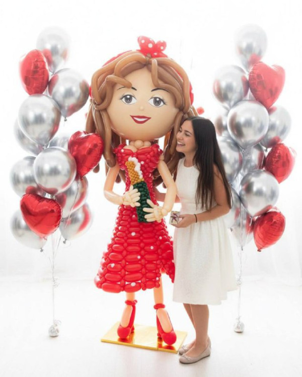 • Фигура девушки из шаров высотой около 2х м. Пришлите фото подруги, сделаем по фото прическу, одежду и цвет глаз
