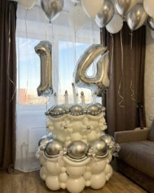 В компании Планета шаров можно заказать торт из воздушных шаров с доставкой по Москве и Московской области. Мы создаём красивые фигуры из шариков и доставляем их уже готовыми к празднику.