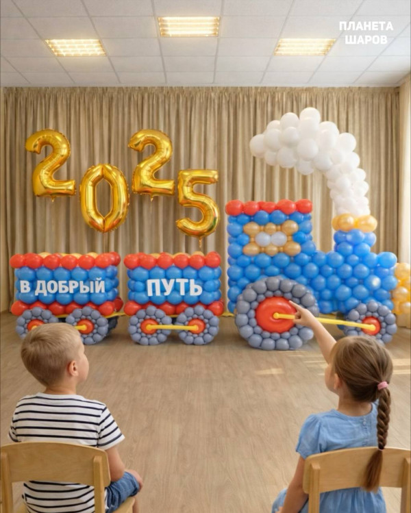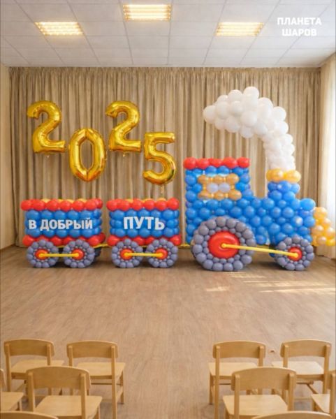 Выпускной на поезде — это не просто декор, а символ начала нового пути. Доверьте оформление профессионалам Планета шаров, и выпускной в детском саду станет по-настоящему волшебным праздником для детей и взрослых ✨.