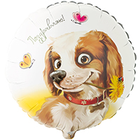 К 18" РУС ПОЗДРАВЛЯЮ Собака с цветком купить в Москве по доступной цене с быстрой доставкой 🎈 Огромный выбор шаров и товаров для праздника. Привезем радость вашим близким 💑