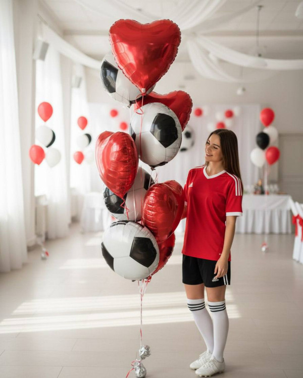В комплекте: 4 футбольных шара и 5 сердец