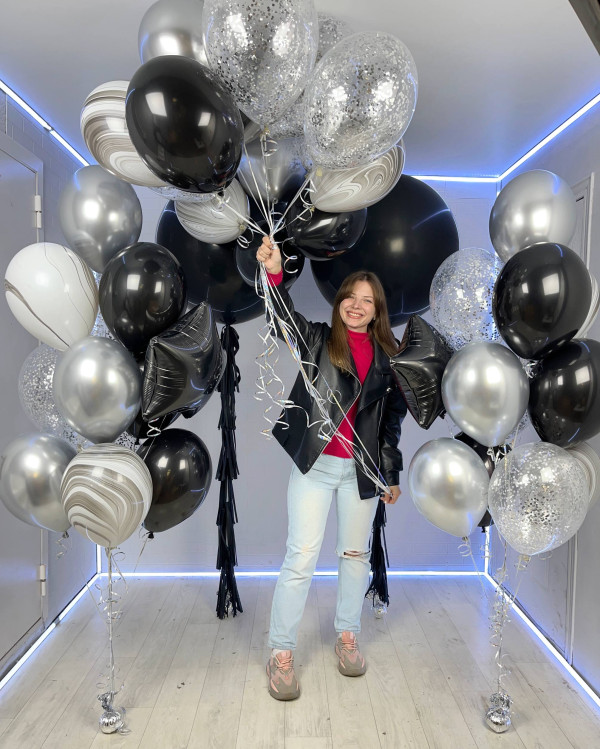 Фонтан шаров черно-серый купить в Москве по доступной цене с быстрой доставкой 🎈 Огромный выбор шаров и товаров для праздника. Привезем радость вашим близким 💑