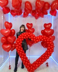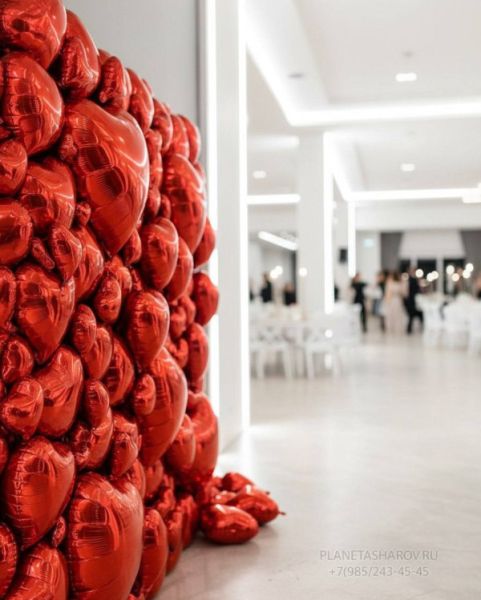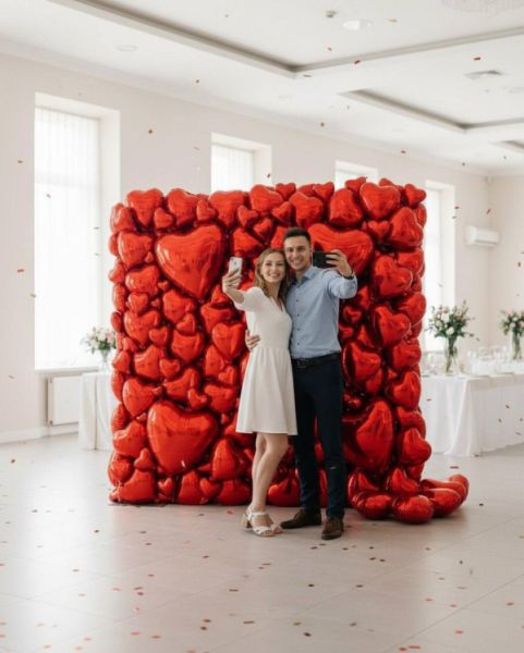 - Фотозона размером 2х2 метра из фольгированных шаров сердец