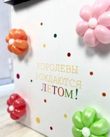 Королевы рождаются летом - коробка с ромашками и шарами купить в Москве по доступной цене с быстрой доставкой 🎈 Огромный выбор шаров и товаров для праздника. Привезем радость вашим близким 💑