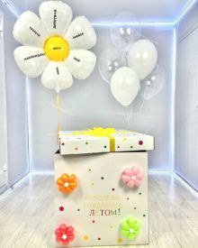 Коробка с воздушными шарами и с цветами