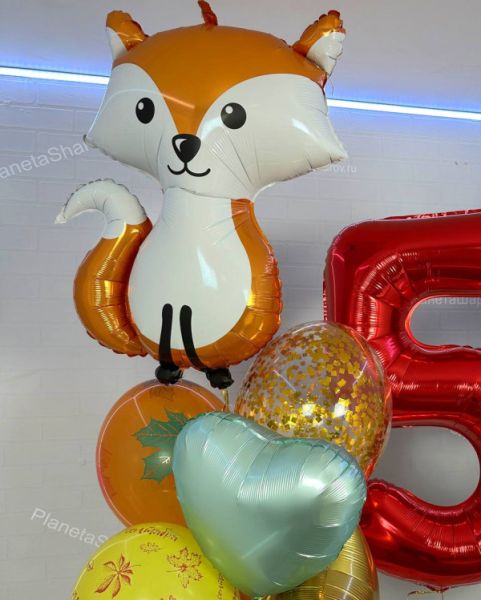 - Фонтан из 7 шаров (Лиса, звезда, сердце, 1 шар с конфетти, 3 шара с рисунком)