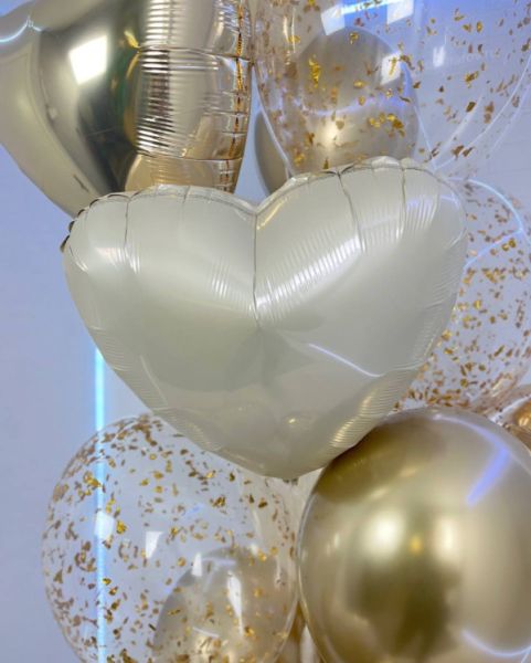 • 2 фонтана по 15 шаров (6 сердец, 3 хром, 3 пастель, 3 с конфетти)