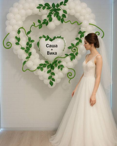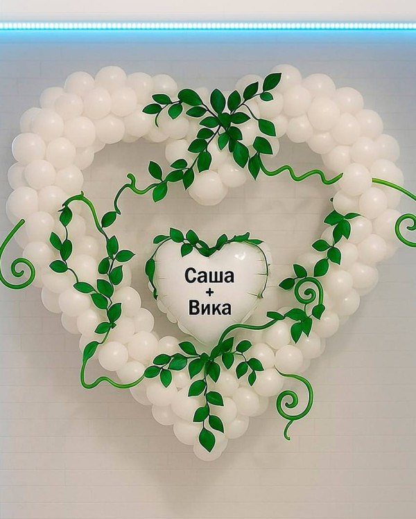 Белое сердце из шаров с именами