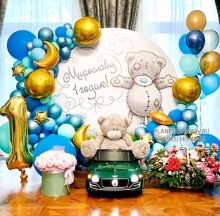 Шары на день рождения мальчику 1 годик можно заказать по индивидуальным параметрам. Наши аэродизайнеры получают престижные награды за создания инсталляций. Поэтому обращаясь к нам, удастся получить уникальный декор, которого не будет больше ни у кого. Чтобы сделать праздник запоминающимся и добавит веселья, следует заказать фотозону. Такие шары на годик ребенку мальчику выбираются синих цветов и обязательно дополняются цифрой 1. Комплект еще может включать звезду, машинки и большие серебряные надувные изделия.