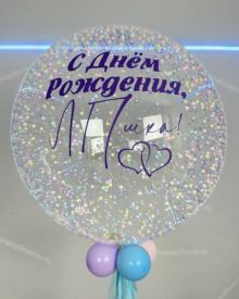 Большой шар с нежными конфетти и гирляндами