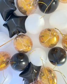Красивое сочетание шаров черно-белое золото под потолок купить в Москве по доступной цене с быстрой доставкой 🎈 Огромный выбор шаров и товаров для праздника. Привезем радость вашим близким 💑