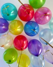 Цвета воздушных шаров сине-розовые с гелием под потолок