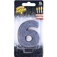 Свеча -цифра "6" Черная глиттер 8см/A