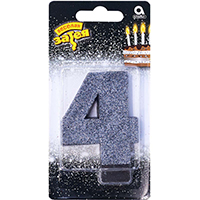 Свеча -цифра "4" Черная глиттер 8см/A