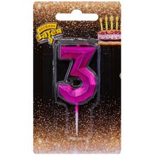 Свеча -цифра "3" Диамант Маджента 4,5смV