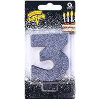 Свеча -цифра "3" Гигант глиттер 13см/A