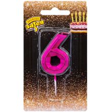 Свеча -цифра "6" Диамант Маджента 4,5смV
