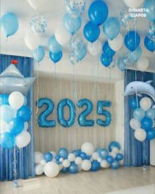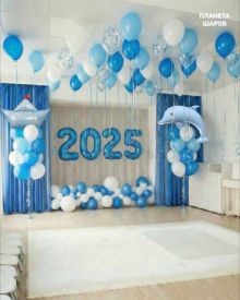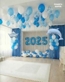 Воздушные шары на выпускной в детском саду подходят как для оформления музыкального зала, так и для мероприятий на улице. Композиции могут дополняться цифрами, надписями, персонажами и декоративными элементами, связанными с детством и обучением. Такой декор делает праздник визуально насыщенным и запоминающимся.